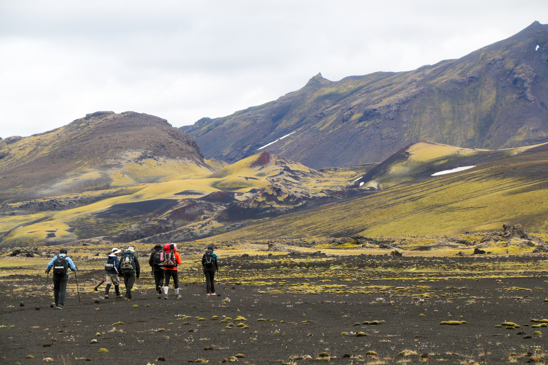 Beautiful assisted 4-day walking adventure hut to hut along the south flank of Mount Hekla, one of Iceland's best known volcano and through the Fjallabak Natural Reserve...